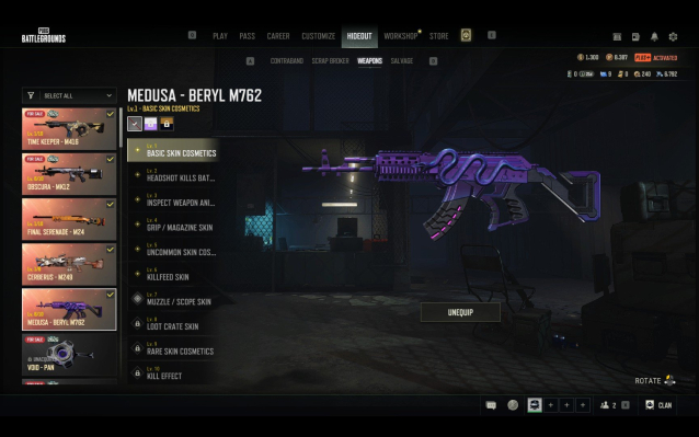 💎BERYL-MEDUSA 6 LVL,💎MK12-OBSCURA,💎M24-FINAL SERENADE,💎M249-CERBERUS,💎M416-TIME KEEPER,💎Yellow SMOKE,💎PINK SMOKE