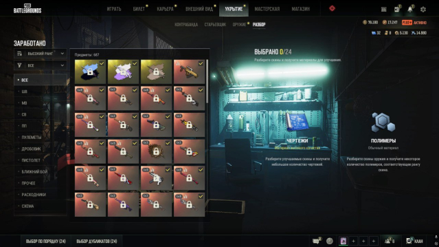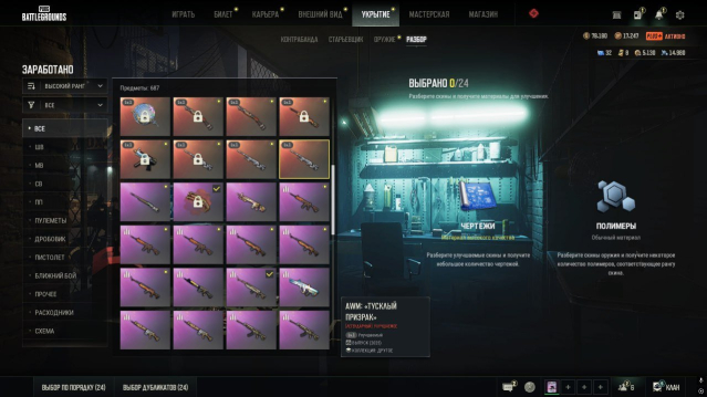 НА АККАУНТЕ ТАК ЖЕ ИМЕЕТСЯ 100 000 G-COIN, 32 ЧЕРТЕЖЕЙ ДЛЯ ПРОКАЧКИ ОРУЖИЯ УКРЫТИЯ, 14 000 ПОЛИМЕРОВ5000 СКРАПА