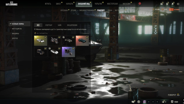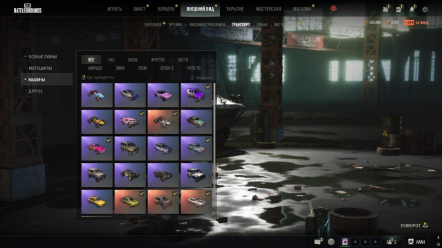 Все виды транспорта видны на скринах ниже (На транспорте есть редкие цвета и кастюмизации)