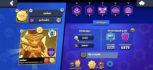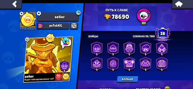 — Аккаунт зарегистрирован в 2020. и имеет 45 титулов. Так-же третью солнечную вторую славу славу. 26 баффи. Так же есть соевый деррил и ниндзя тара. На аккаунте 4956 монет, 58 гемов, и 11.200 очков сил.