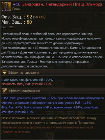 Название: +16 ЛЕГЕНДАРНЫЙ ПЛАЩ ЭЛЬМОРА