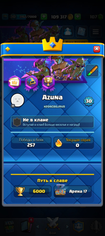 Краткое описание: ⚡️【• 3 𝑬𝑽𝑶•】🏆 6000 КУБКОВ【 👤 】109 / 121【 💛 • 4 ЧЕМП • 12 ЛЕГ 】【 💎 107 • 🟡 • 109К 】
