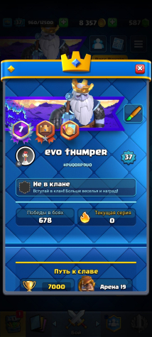 Краткое описание: ✅ 19 АРЕНА ☘️✅ 7000 КУБКОВ ☘️✅ 9 ЭВО☘️✅ 119 КАРТ ☘️✅21 ЛЕГA☘️✅ ЛУЧШИЙ АКК Подробное описание.