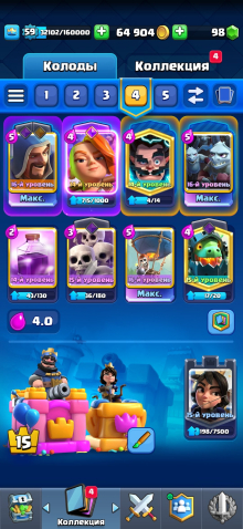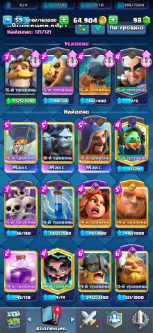 Краткое описание: 10000🏆25 АРЕНА🏟️59 УРОВЕНЬ🏰2 ЗДАНИЙ📶121 КАРТ⭐️29 ЭМОДЗИ🪙3шт-16СИЛ,4шт-15СИЛ,4шт-14СИЛ💪5 ЭВО👾