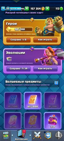 Краткое описание: 9000🏆55 УРОВЕНЬ📶121/121 КАРТ🌟3 СКИНА НА БАШНЮ🏰60 ЭМОДЗИ🪙2шт-16СИЛ,3шт-15СИЛ,4шт-14СИЛ💪7 ЭВО👾