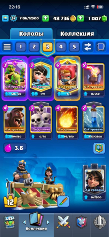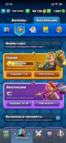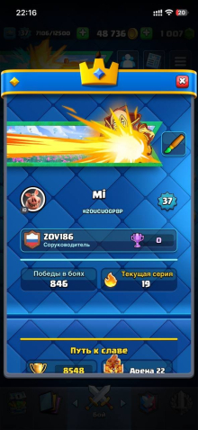 🟢основной аккаунт 🟢 смена почты 🟢смена никнейма 🟢8500+ кубков🟢все карты 🟢множество эволюций, 22 арена, 37 уровень, 8548 кубков, 121 карт, 24 лег, Есть
