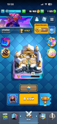 🔴🔴🔴ЛИЧНЫЙ АККАУНТ🔴🔴🔴11700 КУБКОВ🔴🔴1125 ГЕМОВ🔴🔴ТОПОВАЯ ПРОКАЧКА🔴🔴81 ЭМОДЗИ🔴🔴13 ЭВОЛЮЦИЙ🔴, 27 арена, 57 уровень, 11236 кубков, 121 карт, Есть