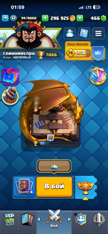 лучший акк за свои деньги, 19 арена, 32 уровень, 7066 кубков, 115 карт, 19 лег, Нет