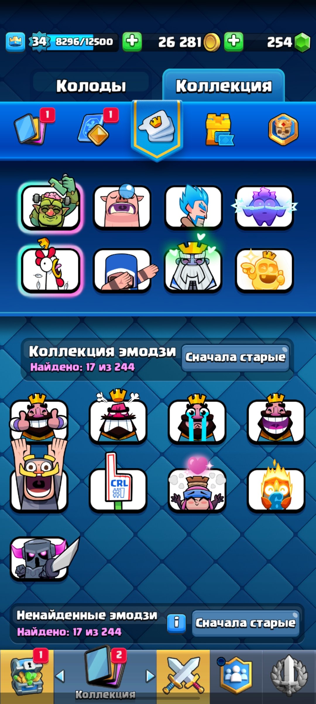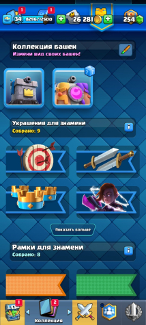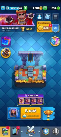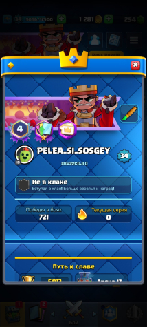 【👑1 EVO/1 Герой👑】【💪13 lvl - 2 | 12 lvl - 12💪】【🌟Скин на башню🌟】【ꜰɪʀsᴛᴍᴀɪʟ】, 17 арена, 34 уровень, 6012 кубков, 111 карт, 20 лег, Нет