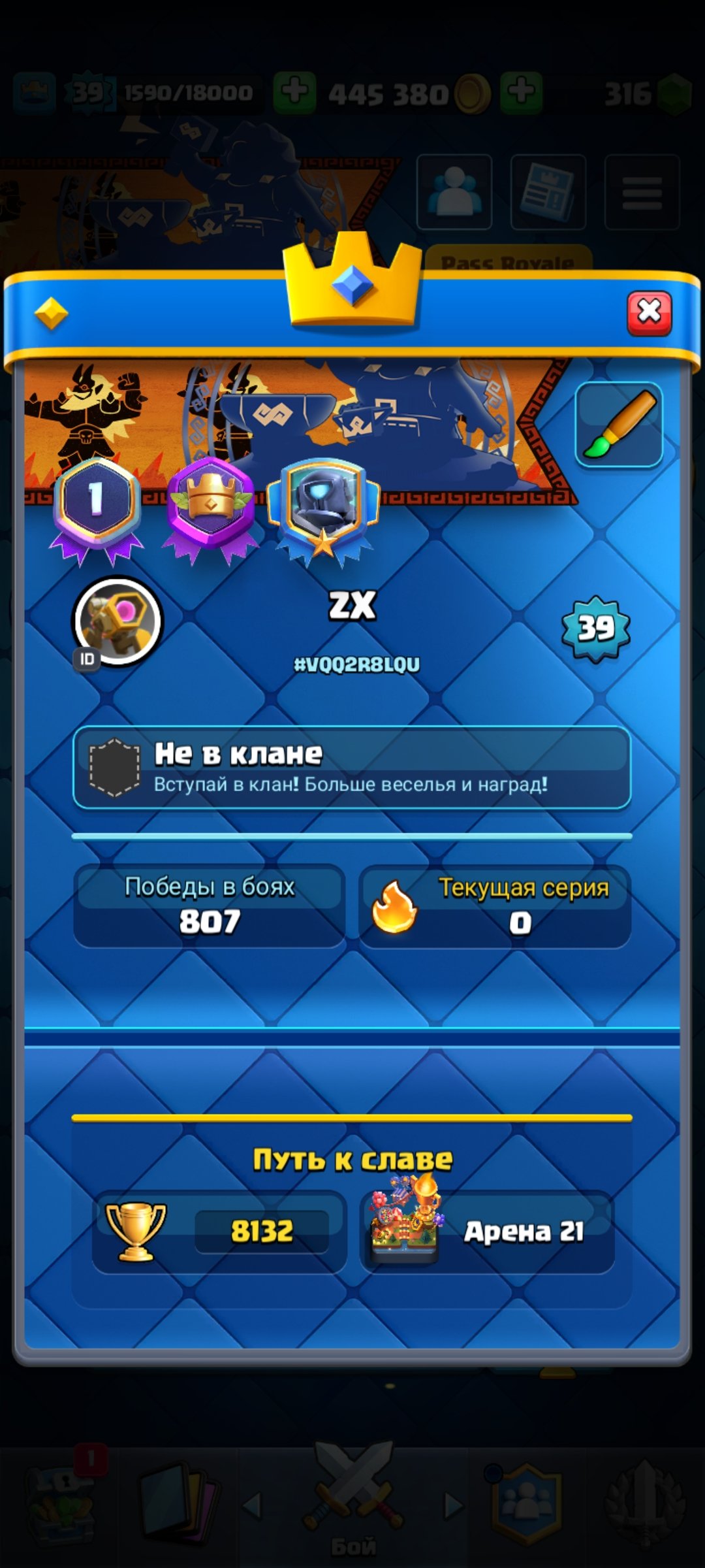 【👑5 EVO/2 Героя👑】【💪14 lvl - 2 | 13 lvl - 2💪】【🤤Плачущий Принц; 67🤤】【🌟Скин на башню🌟】【ꜰɪʀsᴛᴍᴀɪʟ】, 21 арена, 39 уровень, 8132 кубков, 121 карт, 21 лег, Н