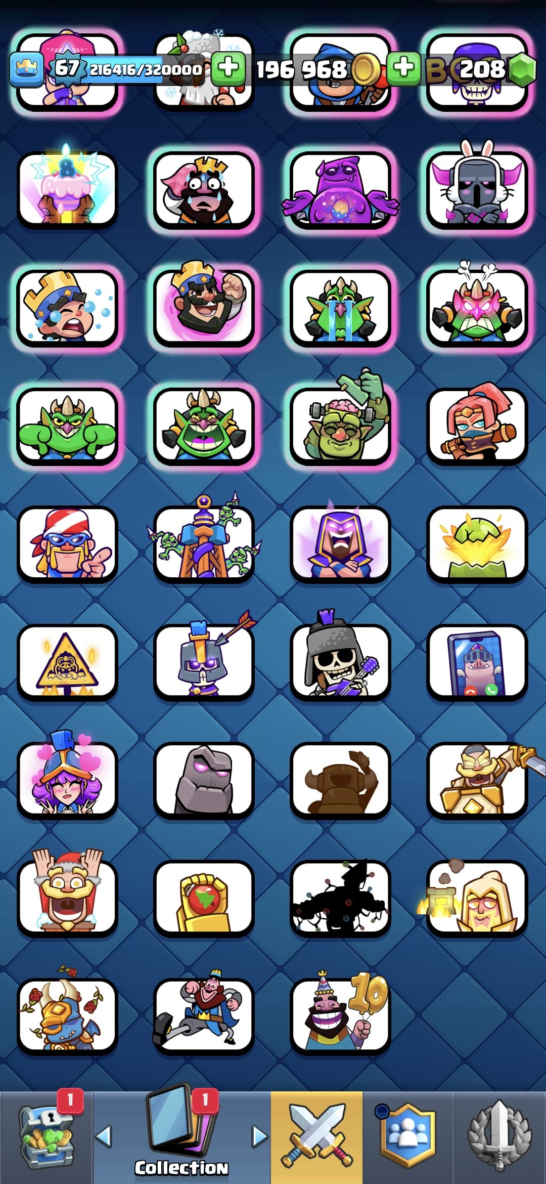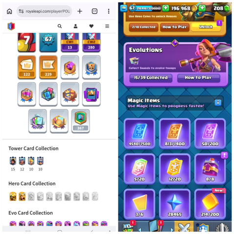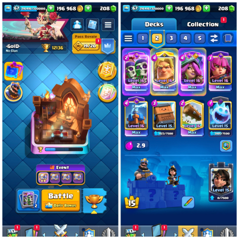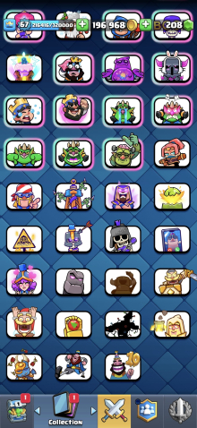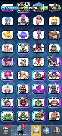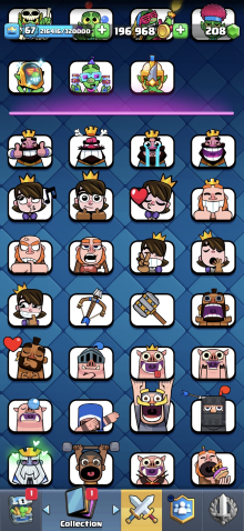 Жирный акк 67 ур с 2 герой 15 эволюция 9 16ур 20 15ур карте, 29 арена, 67 уровень, 12000 кубков, 121 карт, 29 лег, Нет