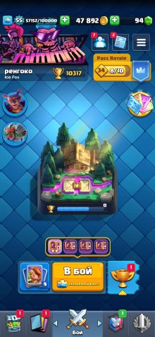 10000🏆25 АРЕНА🏟️55УРОВЕНЬ📶121 КАРТ🌟8 СКИНОВ НА БАШНЮ🗼70 ЭМОДЗИ🪙8шт-15СИЛ,10шт-14СИЛ💪13 ЭВО👾, 25 арена, 55 уровень, 10000 кубков, 121 карт, 21 лег, Ест