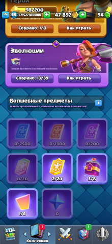 Краткое описание: 10000🏆25 АРЕНА🏟️55УРОВЕНЬ📶121 КАРТ🌟8 СКИНОВ НА БАШНЮ🗼70 ЭМОДЗИ🪙8шт-15СИЛ,10шт-14СИЛ💪13 ЭВО👾
