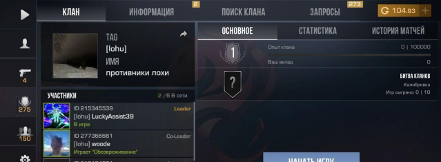 Есть свой клан с 20 местами