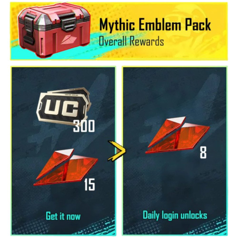 📦 Получаете сразу: 300 UC, 15 частей миф. эмблемы
