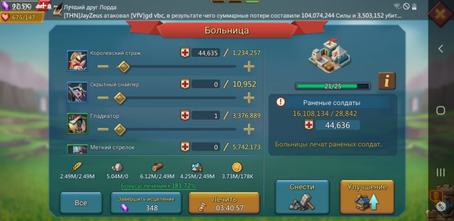 Подробное описание: Продается боевой аккаунт с боевой мощью без войск 100 млн. Войска в больнице 21.5 млн войск т2 т3. Есть шмот чемпиона. камни. Замок был ловушкой. Донат был в размере 23 тыс рублей. Гугл почта включена.