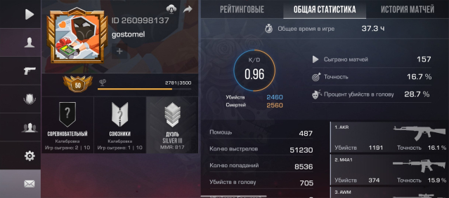 Подробное описание: 50 лвл игровые часы 37 кд по убийствам 2460 а смертей 2560 и 750 убийств в голову продаю потому что надоела игра