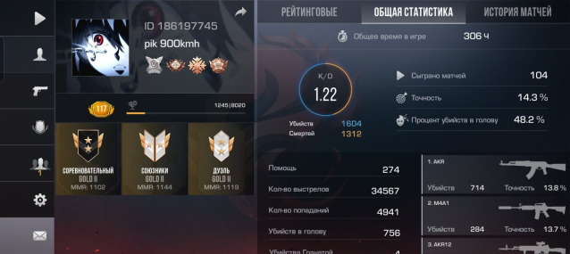 Звание: Gold lllКраткое описание: топовый акк голд 3 мм голд 2 союзы нож мантис