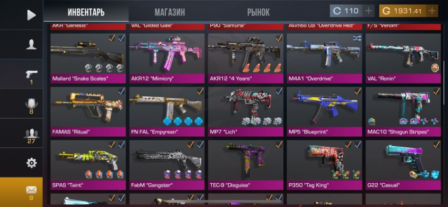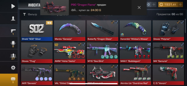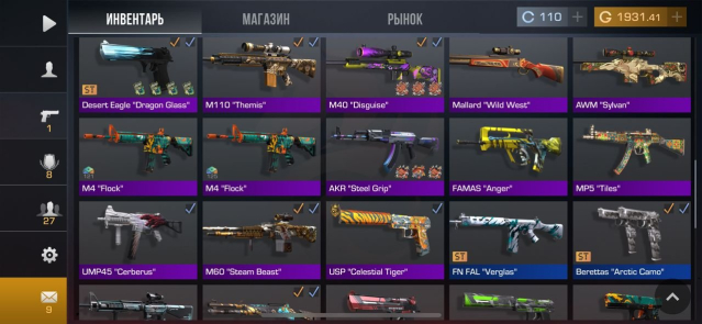 Подробное описание: Имеются много ножей, скины с наклейками фотки чекайте