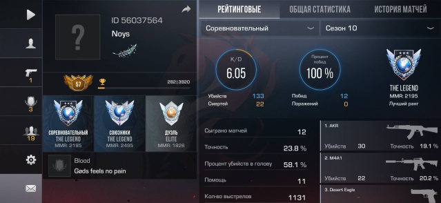Звание: LegendКраткое описание: 🎀 《ID 56037564》《MEDAL DIAMOND COMPETITIVE》《10 LEGENDA》《925 ЧАСОВ》《 GOOGLE》🎀