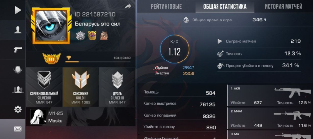 Звание: Gold lКраткое описание: 🔥Топовый аккаунт с 141 лвл 🔥 Наиграно 350ч💯8 голды и пару скинов💫