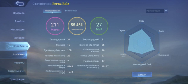 Рейтинговый винрейт: 211 игр на 55.45%