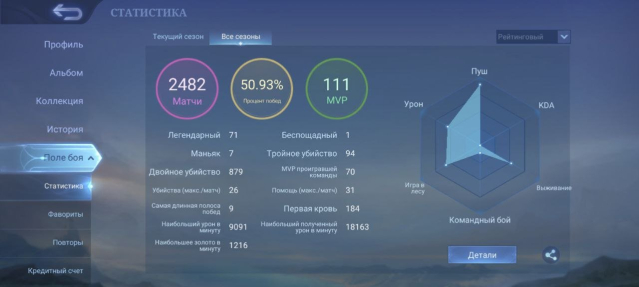 Рейтинговый винрейт: 2482 игр на 50.93%