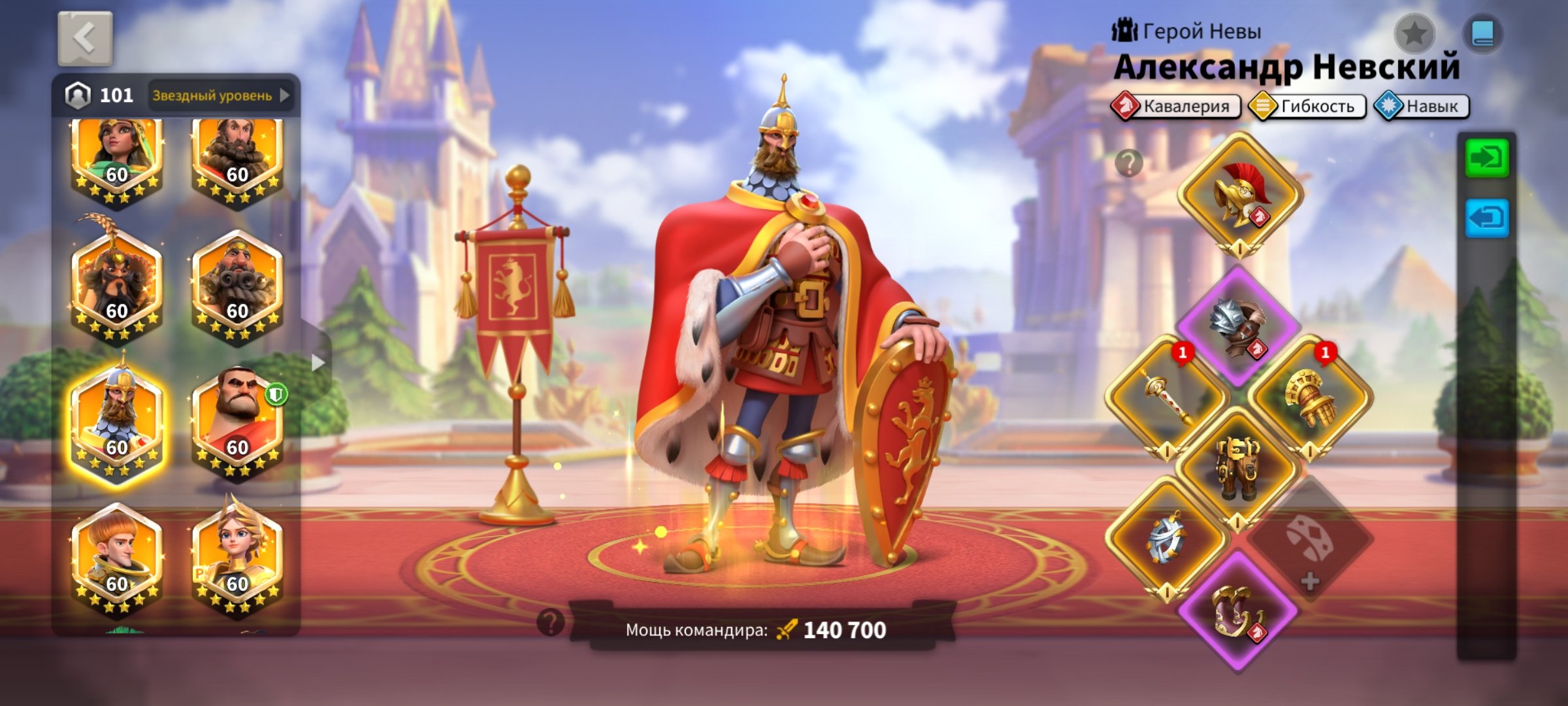 — Кавалерия: Хоу, Жанна П, Невский, Артур, Аттила, Такеда, Уильям, Сян Юй, Ахиллес