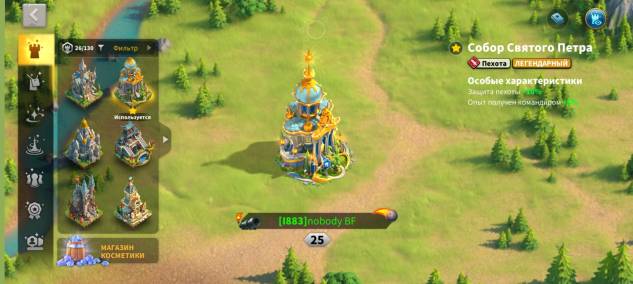 🔹Есть легендарная тема города с магазина КВК на 10% защиты пехоте(есть на скриншоте)