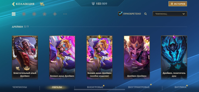 Почти фулл колекция на дрейвена, не хватает только последнего вышедшего скина