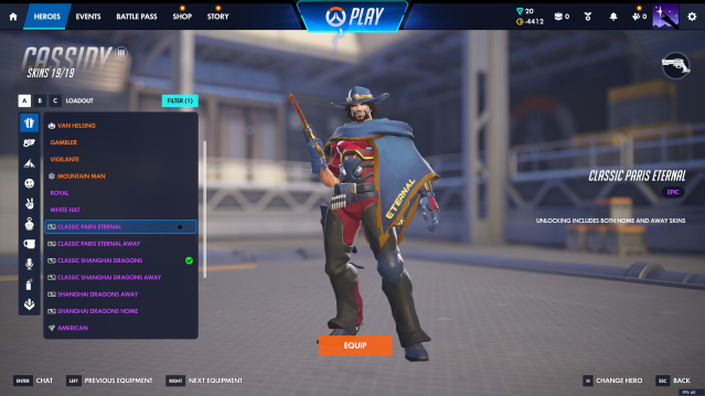 OWL Skins: Classic Paris Eternal, Classic Shanghai Dragons, Shanghai Dragons Cassidy; Cosmic Widow, Guangzhou Charge Doomfist; Cosmic Reinhardt, Houston Outlaws Baptiste; Cosmic Lucio;
