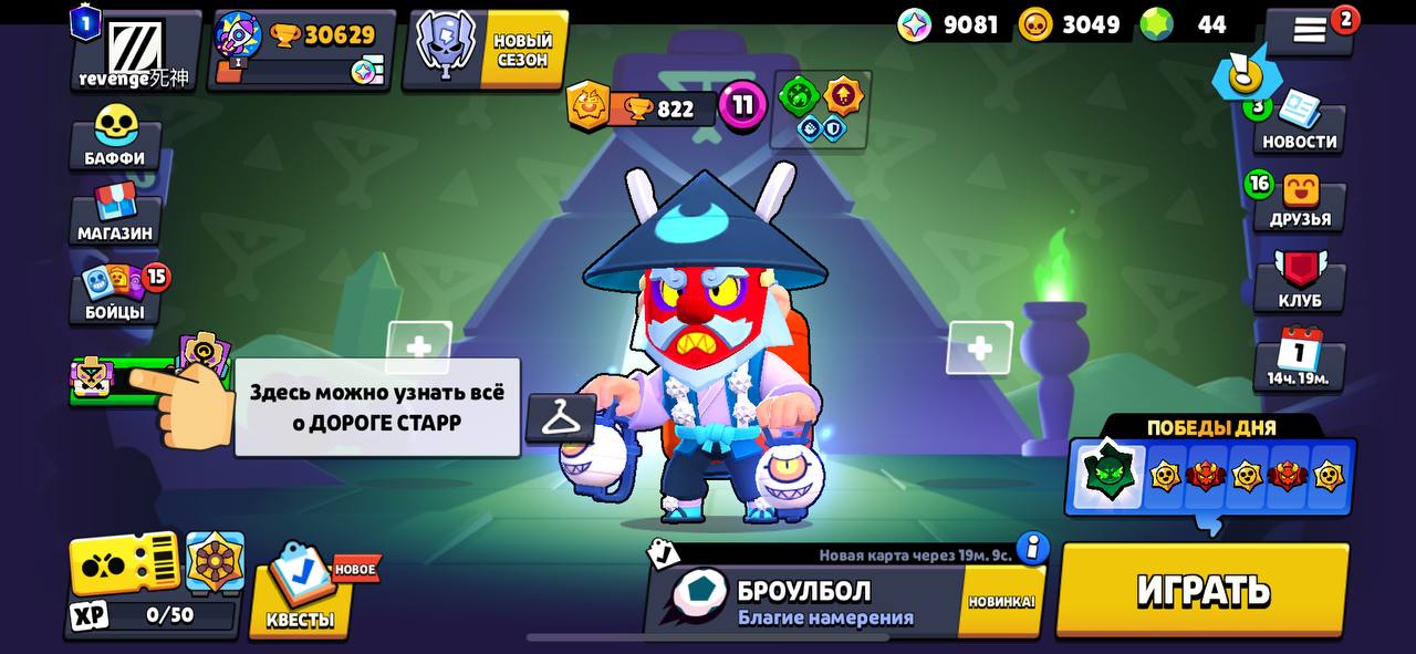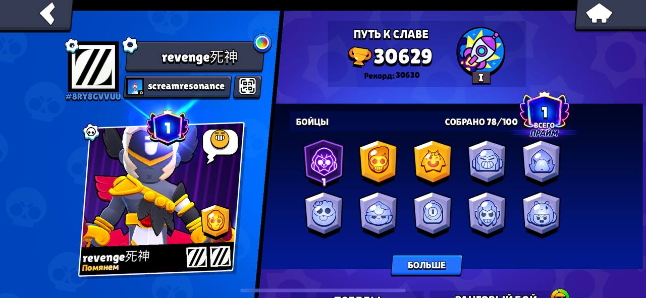 Brawl Stars 30600 кубков, 78/100 бойцов, куча скинов, 9000 блингов, 44 гема