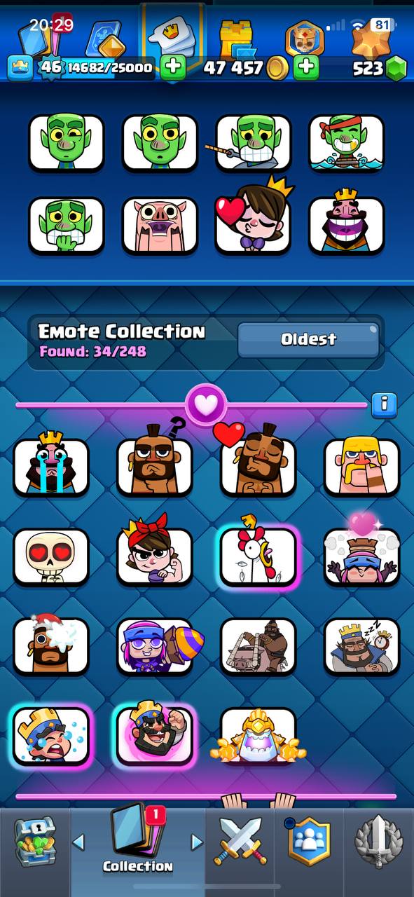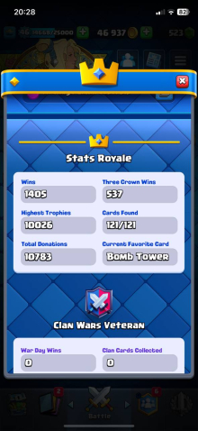 Clash Royale 10к кубков, 7 лет игры, золотой рыцарь, золотая бочка с варваром, эво теслы, 121/121 карты разблокированы, 46 лвл, 17 платных эмоций