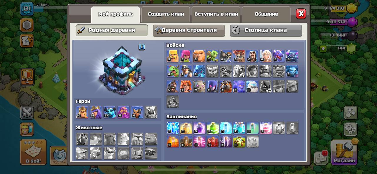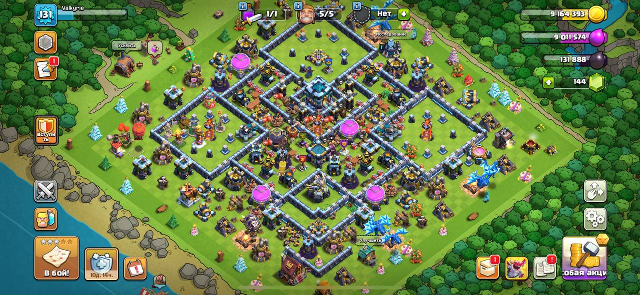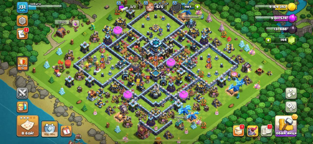 Clash of Clans 13 фулл тх, 131 лвл, скин король варваров пиксельный, 5 строителей, 69 королева лучниц, 60 король, хранитель 32, принц миньонов 33, королевский чемпион 16, дом строителя 6 тх