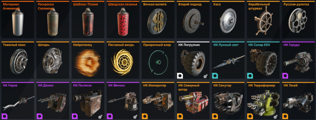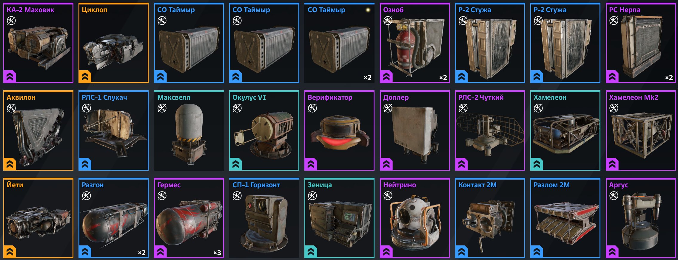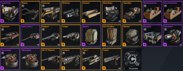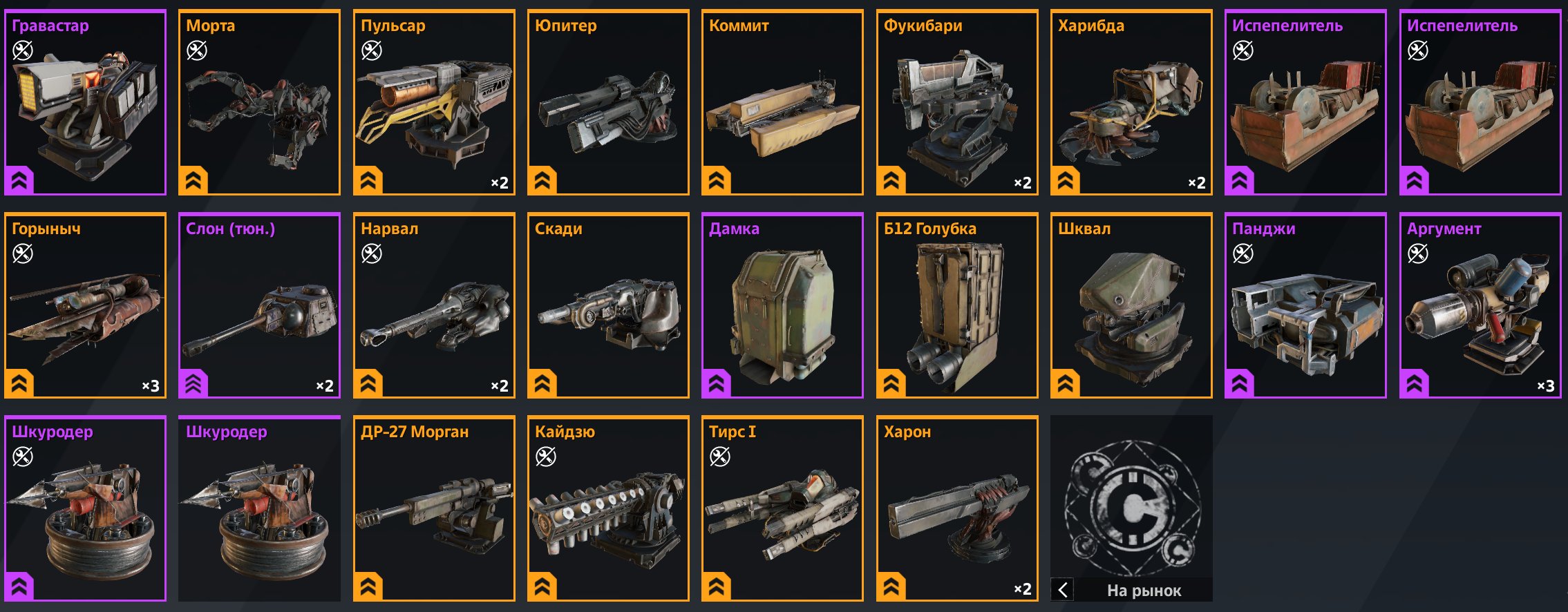 + ходовой на складе лежит побольше, чем на скриншоте из-за ограничения по количеству фото, лежат еще: улучшенные бигфуты, виджеты, увабаки и затворники.