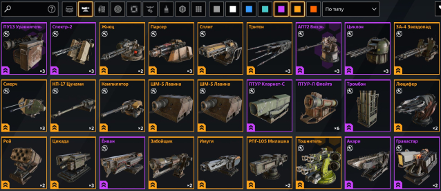 х2 Скорпион, х2 Тайфун, х2 Потрошитель, х2 Разрушитель, х3 Светлячок, Всполох, Один (улучшенный).