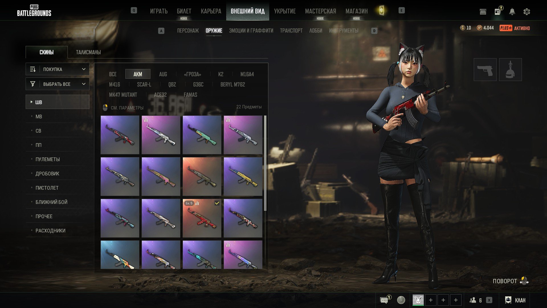 Оружие: MK-12 Фокус-покус lv6, M416 Феникс lv5, AKM Помощник Санты lv5, М24 Сунь Укун lv2, AUG Рисовая пушка lv1, AUG Минотавр lv1, М249 Цербер lv1; Есть 11 чертежей если есть желание прокачать оружие. Также есть 2 цветные смокомушки и розовый смок.