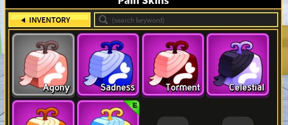 перм фрукты -Rocket, Spin, Blade,Smoke, Spike, Light,Magma,Buddha,Love,Portal, Lightning, Pain, Blizzard, Gravity, Mammoth, T-Rex, Dough, Shadow, Venom, Gas, Spirit, Tiger, Yeti, Kitsune, Control, and Dragon