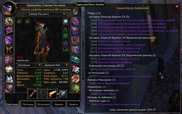 5) Охотник, ночной эльф. Сурв 6к. Инженерное дело + портной. Выбит кодо и баран Хмельного Фестиваля.