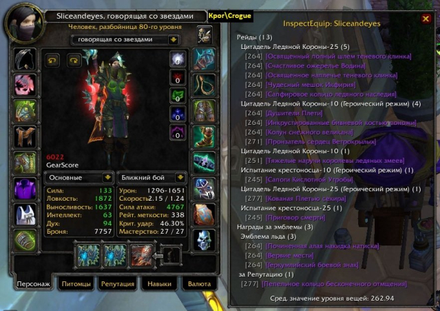 2) Рыцарь смерти, дреней. бдк 6.2 + адк 6к. Инженерное дело + портной (мастер по темной ткани). Есть пульт управления Худовара (портал в ГЧГ).