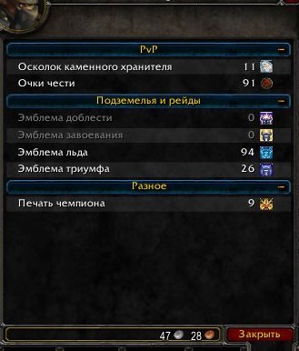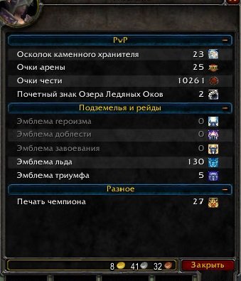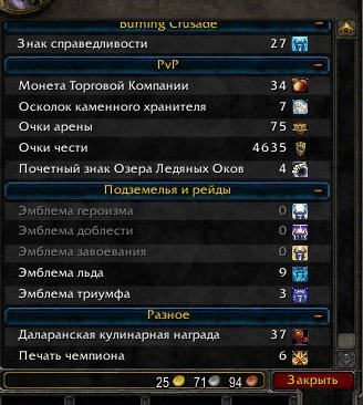 Наличие 18 титулов(Премудрый.Крестоносец.Тыквер.Штормградский.Хохотушка… и т.д.)