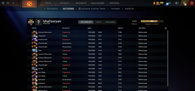 ⚡️ ПОЛНЫЙ ДОСТУП ⚡️ ЛЕГЕНДА 3600 MMR ⚡️ СКИНЫ КВОРТЕРО ⚡️ 11.7К ПОРЯДЫ ⚡️ ГАРАНТИЯ ⚡️ СМОТРИТЕ ОПИСАНИЕ ⚡️Доступен рейтинг: ✅