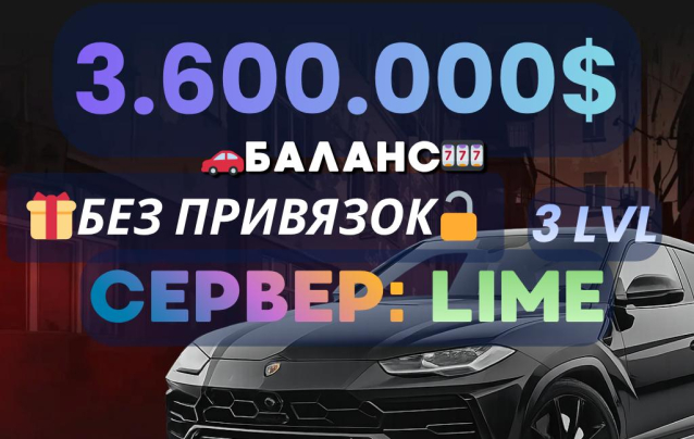 ⚡️ ПОЛНЫЙ ДОСТУП ⚡️ АККАУНТ С 3.600.000$ + 3 LVL + VIP ⚡️ LIME ⚡️ БЕЗ ПРИВЯЗОК ⚡️ СМОТРИТЕ ОПИСАНИЕ ⚡️Уровень: 3