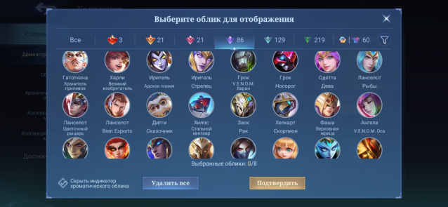 Подробное описание: Имеются почти все прайм облики кроме пса, так же фулл зодиак коллекция кроме карины, фулл чабер веном и горячий запад