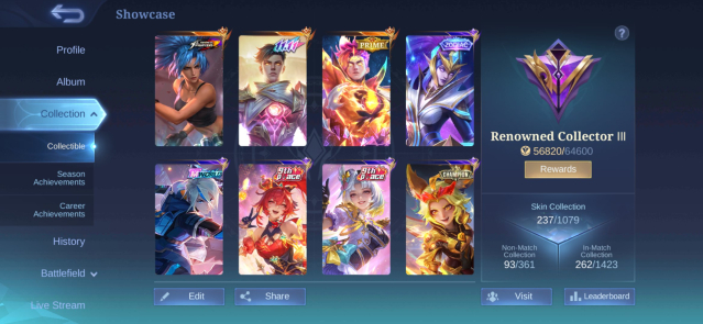 Краткое описание: Renowned Collector, 237 Skins, 11.11 Gusion, Champion Joy, Kof Karina, Prime Claude