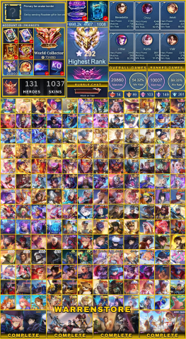 Краткое описание: World Collector 730k+ Points, 1038 Skins, Immortal 292 Star Highest, 14 Legend, 89 Grand