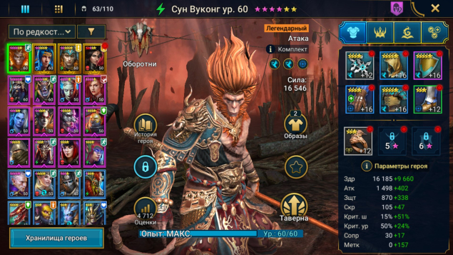 Легендарных героев: 4Эпических героев: 12