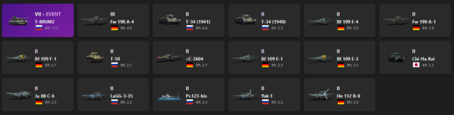 VII - 1 T-80UM2, Fw 190 A-4, T-34 (1941), T-34 (1940), Bf 109 E-4, Fw 190 A-1, Bf 109 F-1, T-50