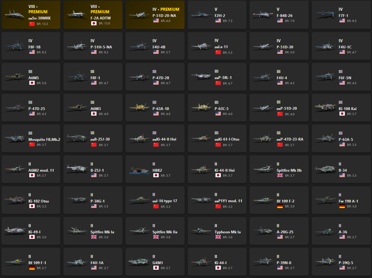 VIII - 2, V - 2 Su-30MKK, F-2A ADTW, P-51D-20-NA, F2H-2, F-84B-26, F7F-1, F8F-1B, P-51H-5-NA, F4U-4B