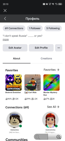 Есть топ брейноты в Steal a Brainot и Brainot Evolution, увлекался Grow a garden, Bee Swarm, Chop your tree, Brainot Tsunami, Craft a Brainot.